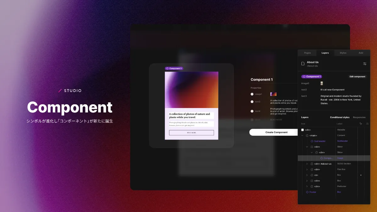 シンボルが生まれ変わり「コンポーネント」として新登場。スタイルは継承したままコンテンツの上書きが可能に