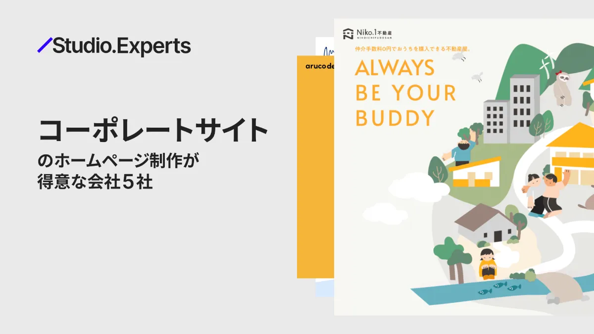 この記事ではコーポレートサイト制作実績が豊富な制作会社を、Studio Expertsから紹介します。なお、どの制作会社に依頼すればいいのか分からない場合は、お気軽にStudioコンサルタントにご相談ください。クオリティやコスト、得意分野などからぴったりの制作会社を選定します。相談料や紹介手数料などは一切かかりません。