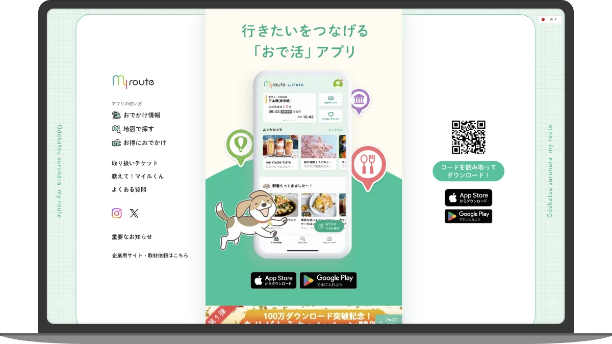 可兒様:my routeの累計ダウンロード数が100万ダウンロードを突破したことを記念した特設ページをStudioで作成しました。デザイナーが作成した構成案をもとに、Figma to Studioを活用して短時間でLPを作成することができました。