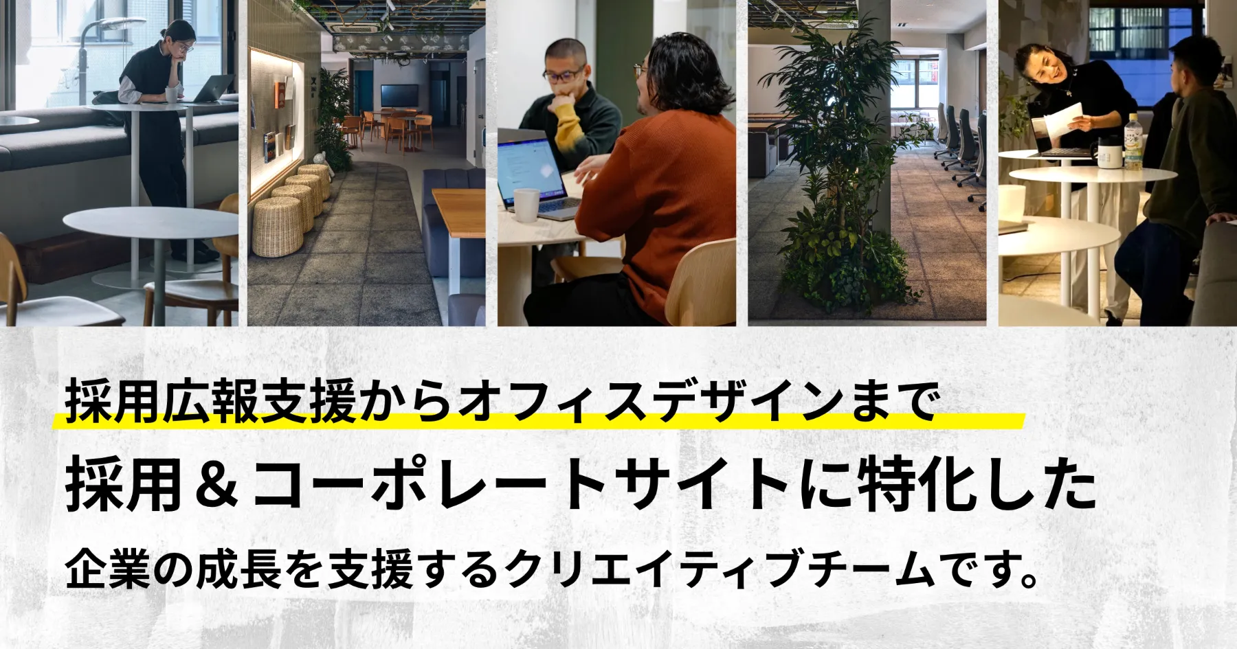 成果をあげる採用&コーポレートサイトを制作。採用広報支援からオフィスデザインまで、企業の成長を支援するクリエイティブチームです。