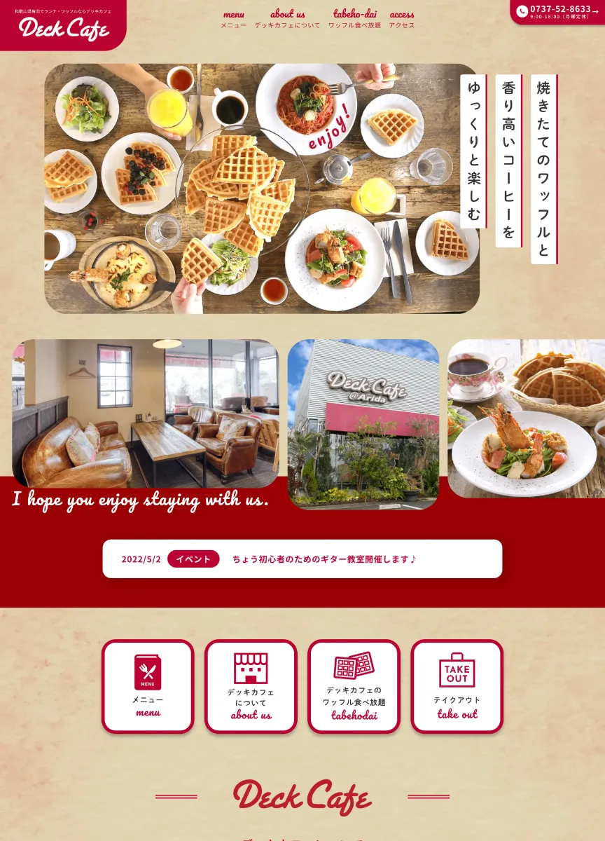 スクリーンショット:ワッフル食べ放題ならデッキカフェ・有田