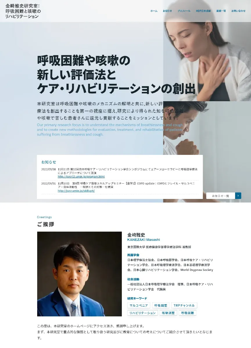 スクリーンショット:金﨑雅史研究室|呼吸困難と咳嗽のリハビリテーション