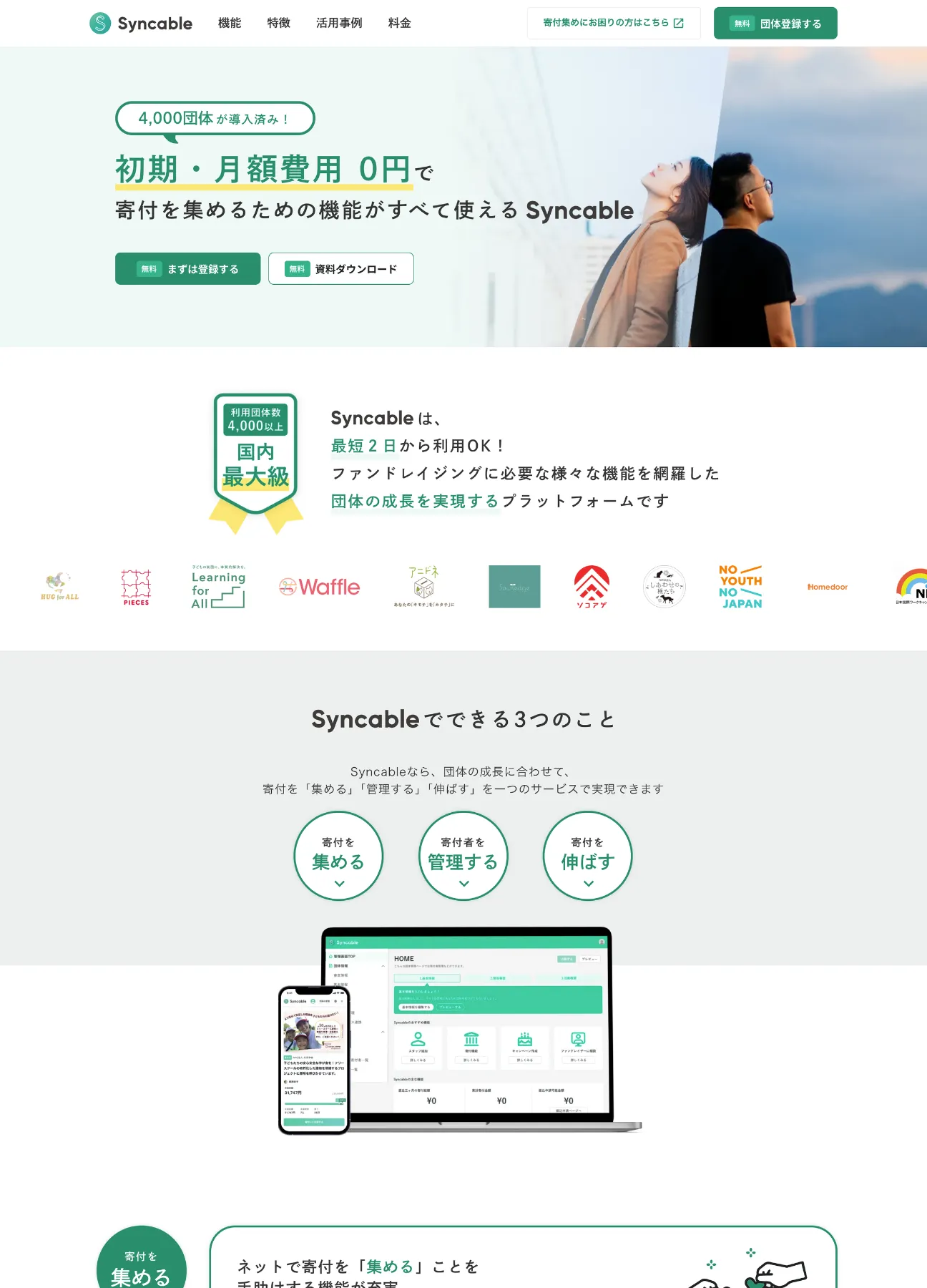 スクリーンショット:Syncable|無料ですべて使える はじめての寄付フォーム