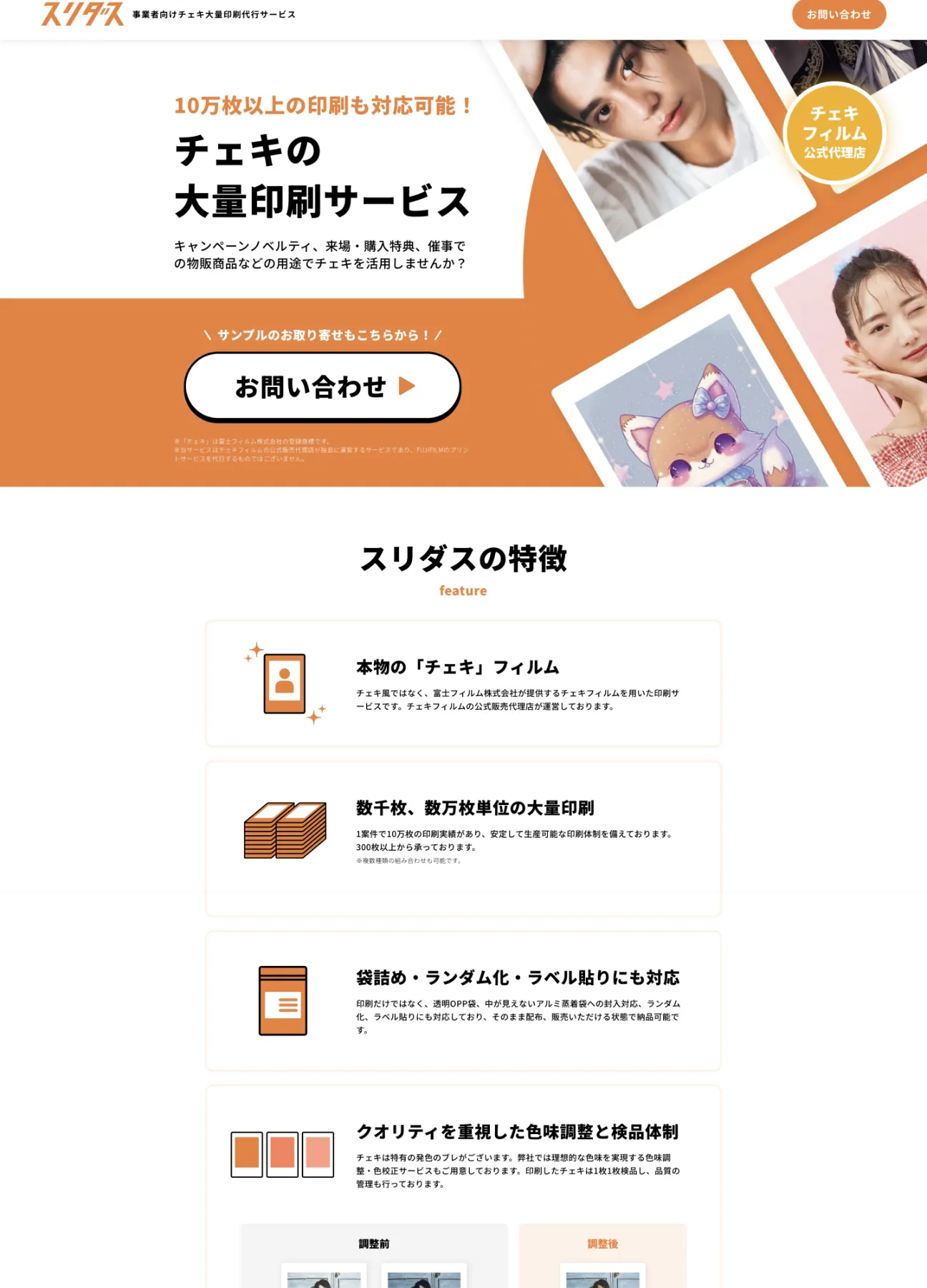 スクリーンショット:スリダス|事業者向けチェキ大量印刷代行サービス