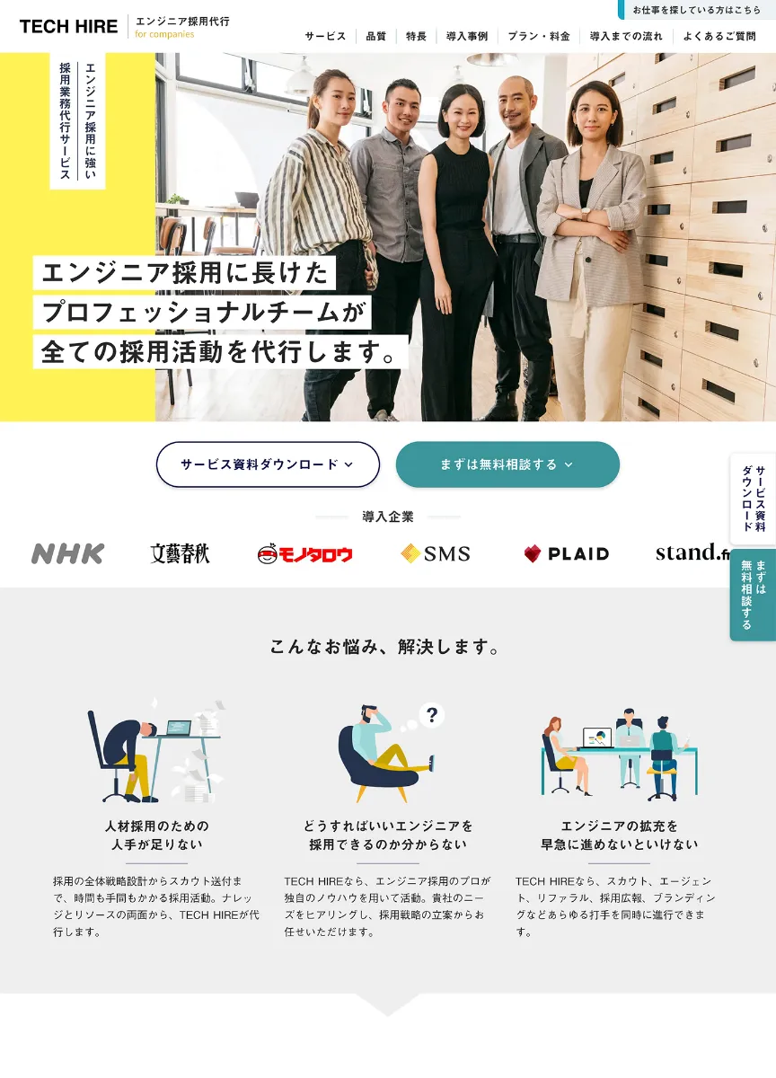 スクリーンショット:TECH HIRE|エンジニア採用代行